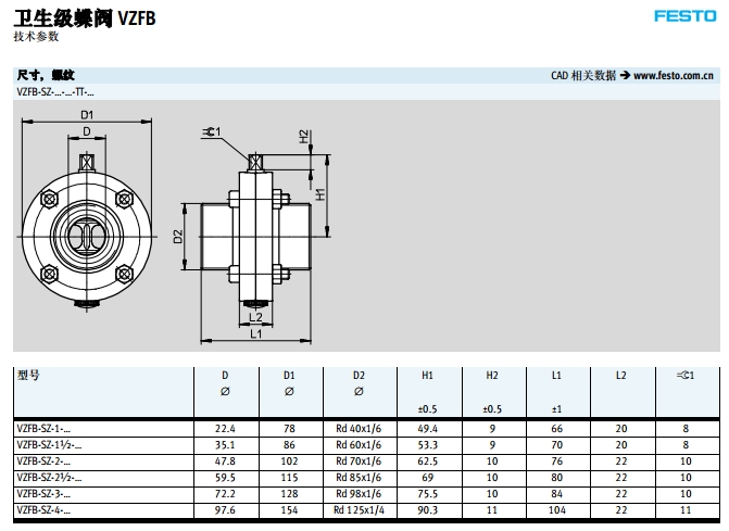 VZFB-A-1-CC,VZFB-A-3-CT,VZFB-A-2-WW,VZFB-A-4-TC,festo衛(wèi)生級(jí)蝶閥
