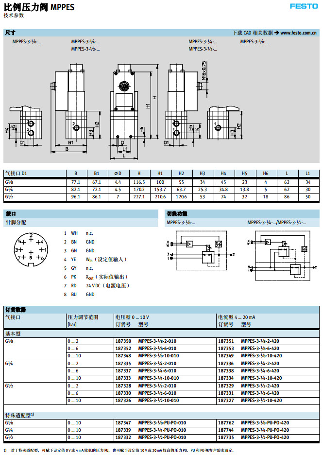 MPPES-3-1/8-2-010,MPPES-3-1/4-2-010,MPPES-3-1/2-2-420,festo比例壓力閥 |