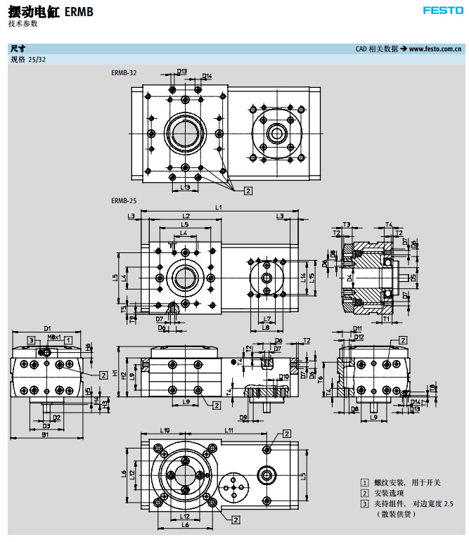 ERMB-20,ERMB-25,ERMB-32,festo擺動(dòng)電缸