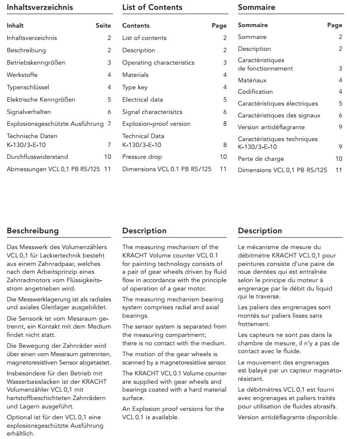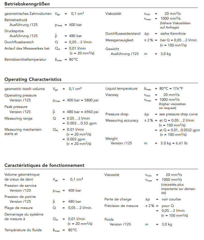 VCL0.1PBRS/125, kracht齒輪流量計