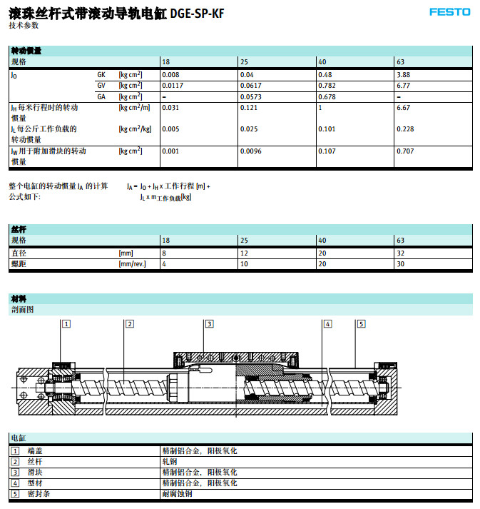 DGE-18-500-SP,DGE-25-500-SP,DGE-40-500-SP,DGE-63-500-SP,festo絲桿式電缸 |