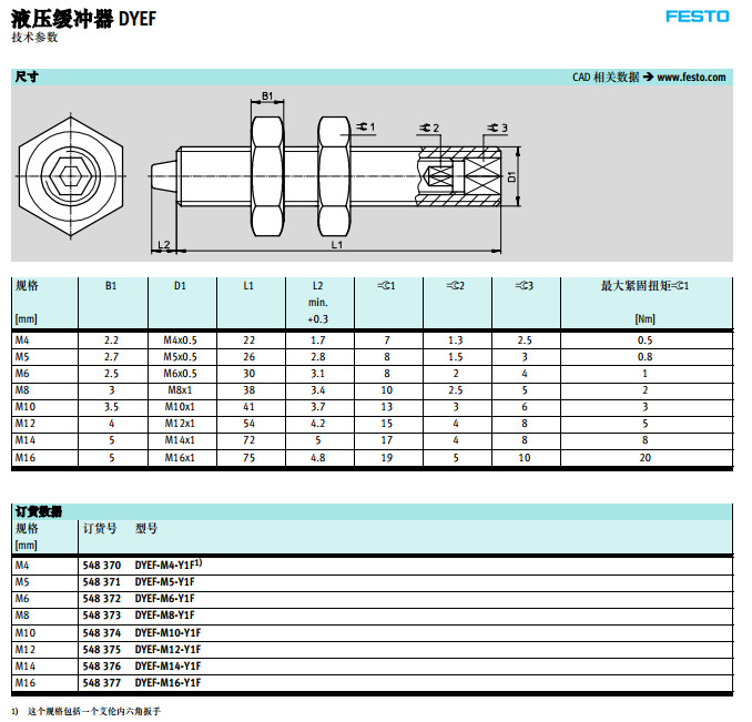 DYEF-M4,DYEF-M5,DYEF-M6,DYEF-M8,DYEF-M10,festo液壓緩沖器