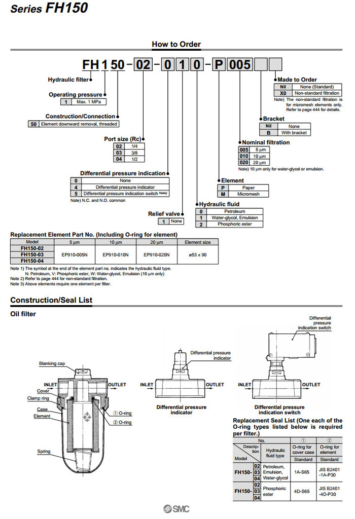 FH150-02,FH150-03,FH150-04,FH150-02-010-P005,FH150-03-010-P005,FH150-04-010-P005,SMC油過濾器