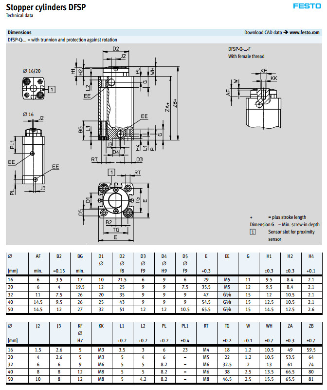 DFSP-Q-16,DFSP-Q-20,DFSP-Q-32,DFSP-Q-40,DFSP-Q-50,festo止動氣缸