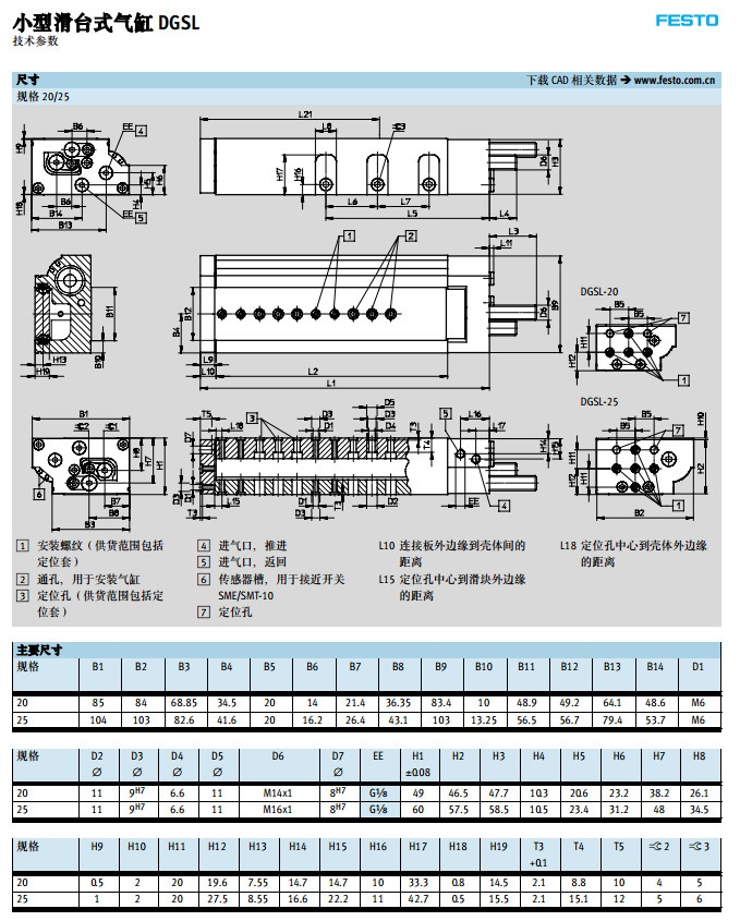 DGSL-4,DGSL-6,DGSL-8,DGSL-10,DGSL-12,DGSL-20,festo小型滑臺(tái)式氣缸