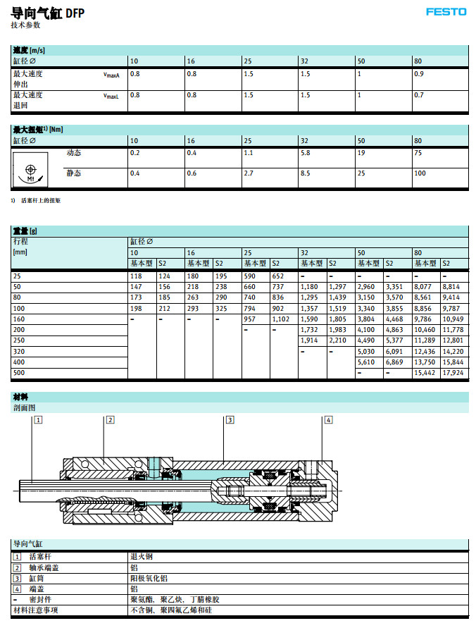DFP-10,DFP-16,DFP-25,DFP-32,DFP-50,DFP-80,festo導向氣缸