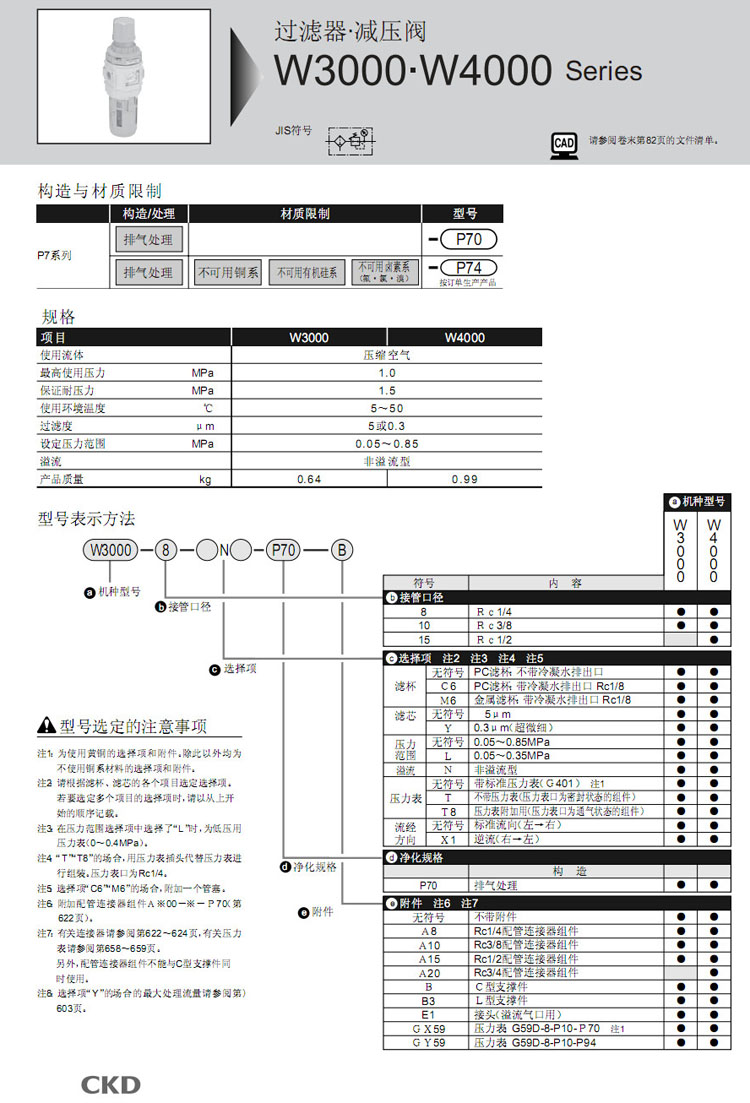 W3000-8,W3000-10,W4000-8,W4000-10,W4000-15,CKD過濾減壓閥