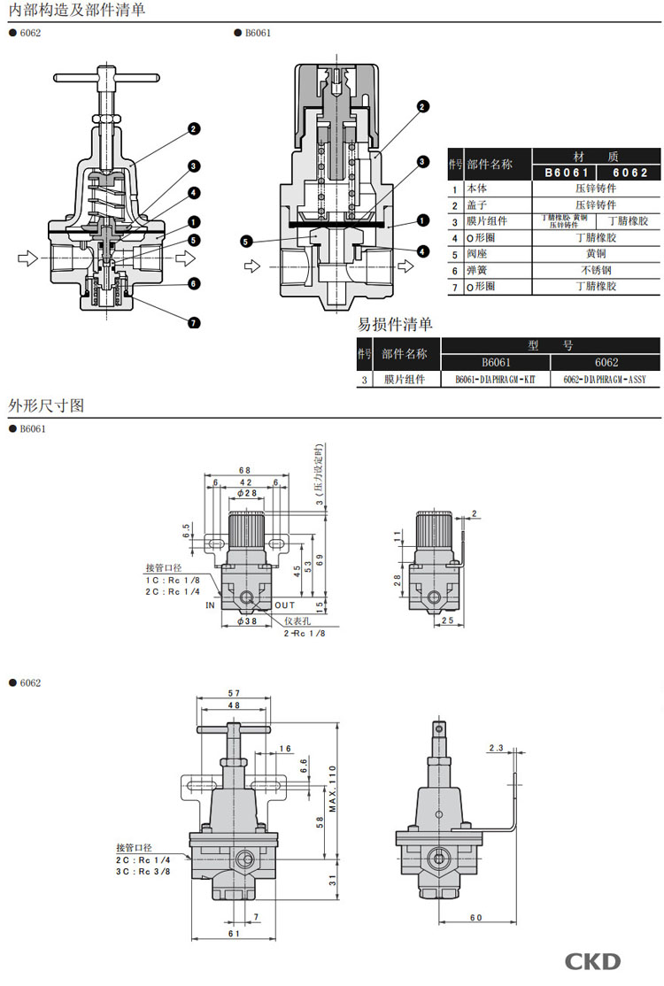 B6061-1C,B6061-2C,B6062-2C,B6062-3C,CKD減壓閥