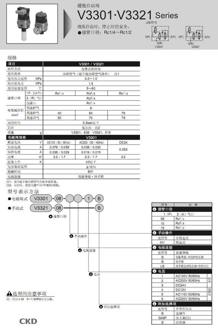 V3301-08,V3301-10,V3301-15,V3321-08,V3321-10,V3321-15,CKD緩慢啟動(dòng)閥