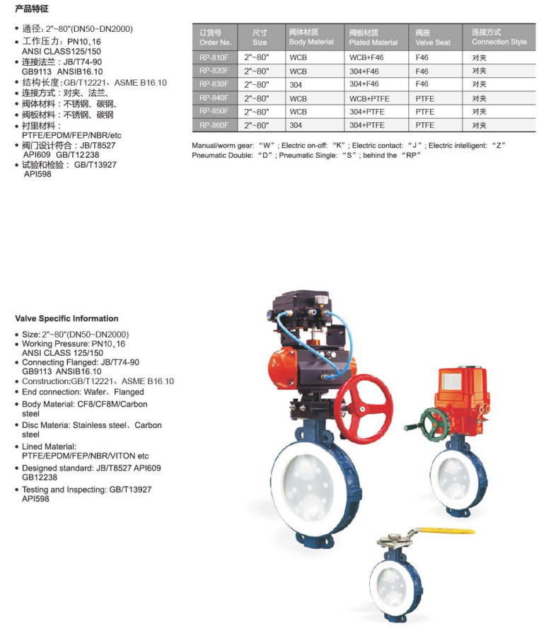規(guī)格: RP-810F,RP-820F,RP-830F,RP-840F,RP-850F,RP-860F,襯膠襯氟蝶閥