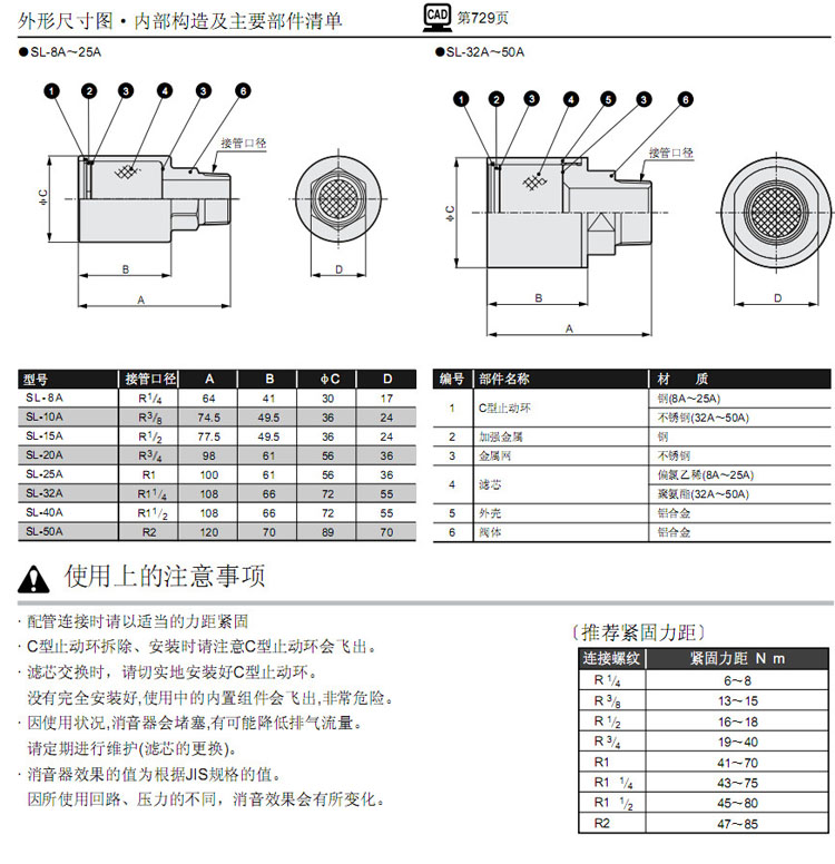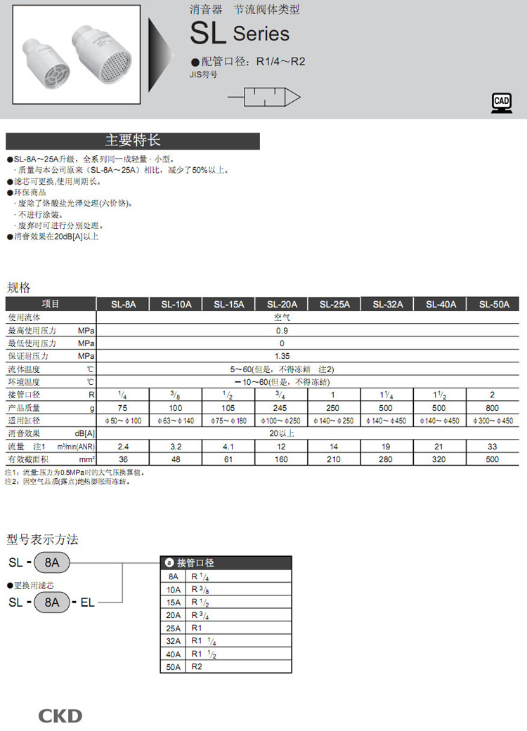 SL-8A,SL-10A,SL-15A,SL-20A,SL-25A,SL-32A,SL-40A,SL-50A,CKD消音器