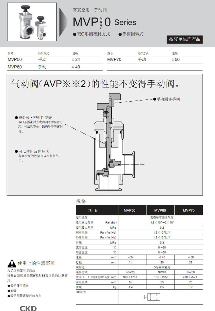 MVP50-25K,MVP60-40K,MVP70-50K,CKD高真空用手動(dòng)閥