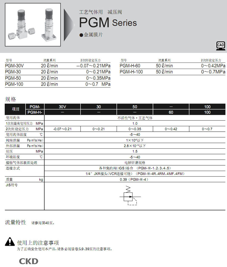 PGM-30V-4R,PGM-30-4R,PGM-50-4R,PGM-100-4R,PGM-H-60-4R,PGM-H-100-4R,PGM-30V-4RM,CKD減壓閥