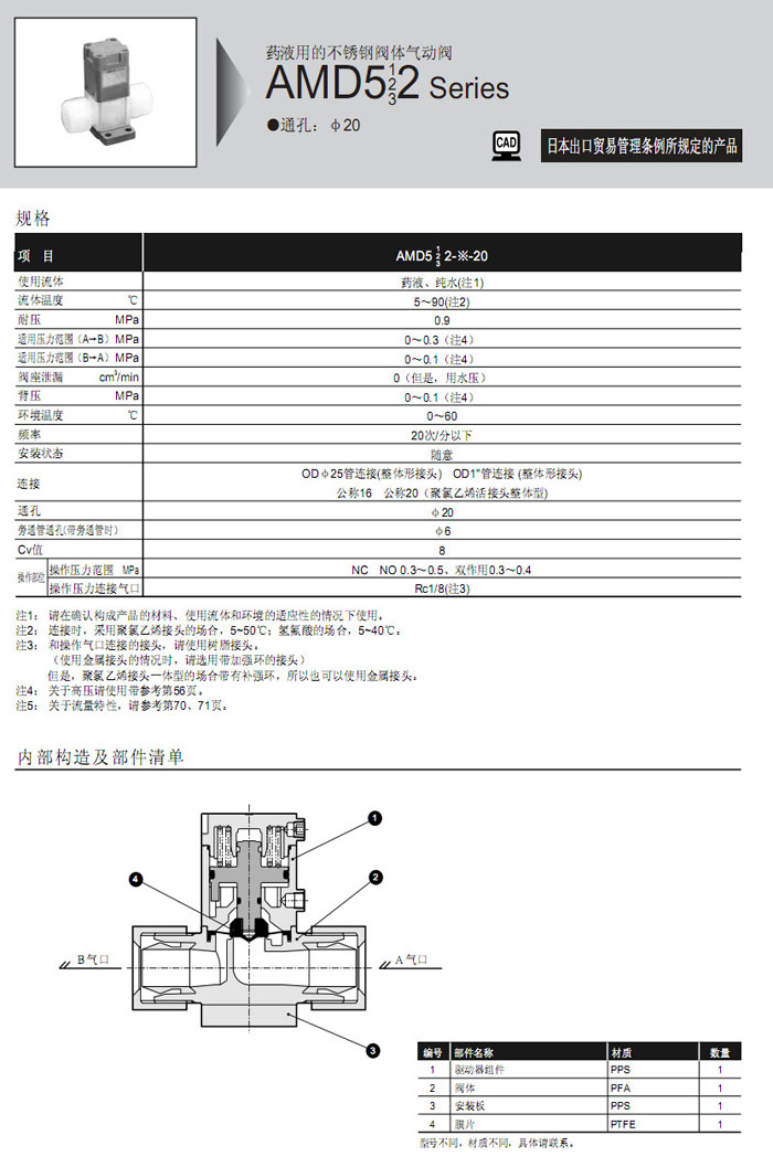AMD512-25US-20,AMD522-25US-20,AMD532-25US-20,AMD512-25UR-20,AMD522-25UR-20,AMD532-25UR-20,CKD藥液用氣動閥