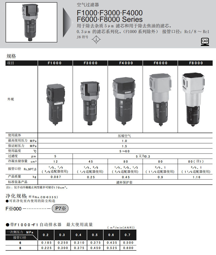 F1000-6,F1000-8,F3000-8,F3000-10,F4000-8,F4000-10,F4000-15,F6000-20,F8000-25,CKD過(guò)濾減壓閥 |