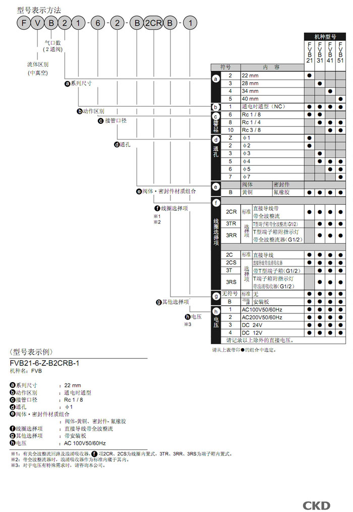 FVB21-6-Z-B2CR,FVB31-6-3-B2CR,FVB41-8-5-B2CR,FVB51-8-5-B2CR,FVB51-8-6-B2CR,CKD直動式2通電磁閥 |