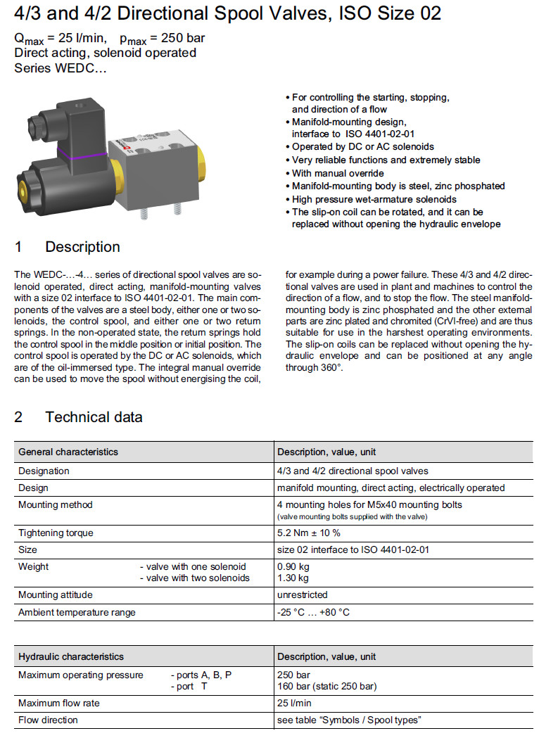WEDC-43-D-4-1,WEDC-42-D-4-1,WEDC-43-D-4V-1,WEDC-42-D-4V-1,Bucher方向閥 |