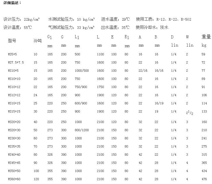 WS5+5,WS7.5+7.5,WS10+5,WS20+30,WS30+30,WS40+40,雙回路冷凝器