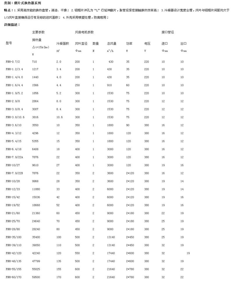 FNH-0.7/2,FNH-1.2/3.4,FNH-2.9/8,FNH-3.0/8.4,FNH-4.3/12,冷凝器