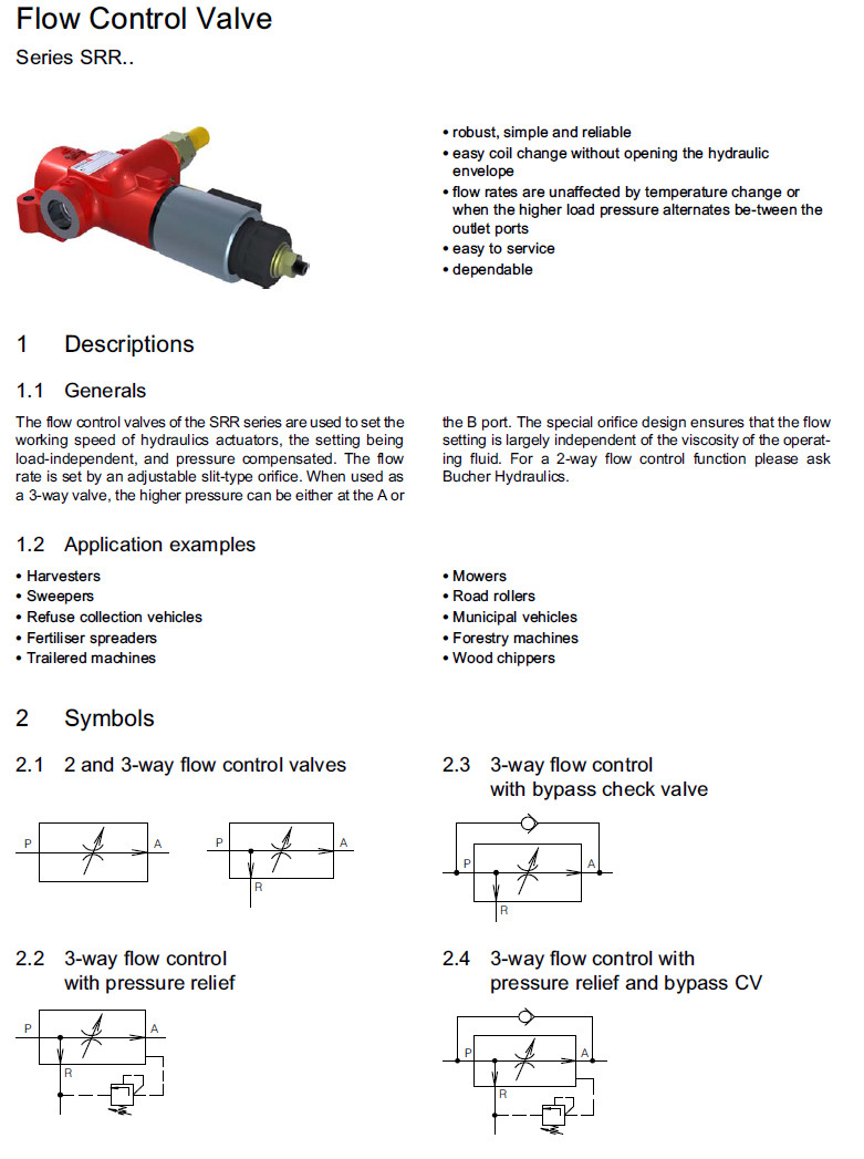 SRRB050S3M-0G12-RP,SRRB050N3M-0G12-RP,SRRB050T3M-0G12-RP,Bucher流量控制閥