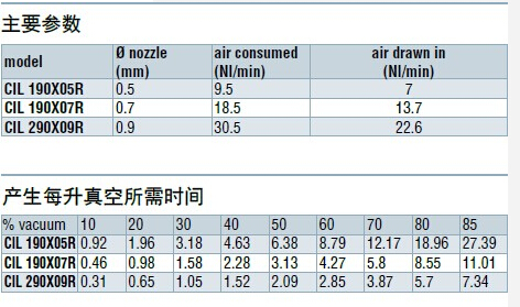CIL系列有3種噴嘴直徑可供選擇(0.5,0.7和0.9mm),真空等級最高達(dá)90%。