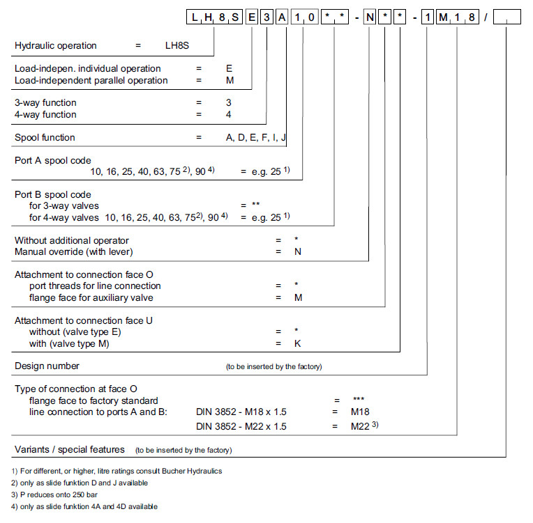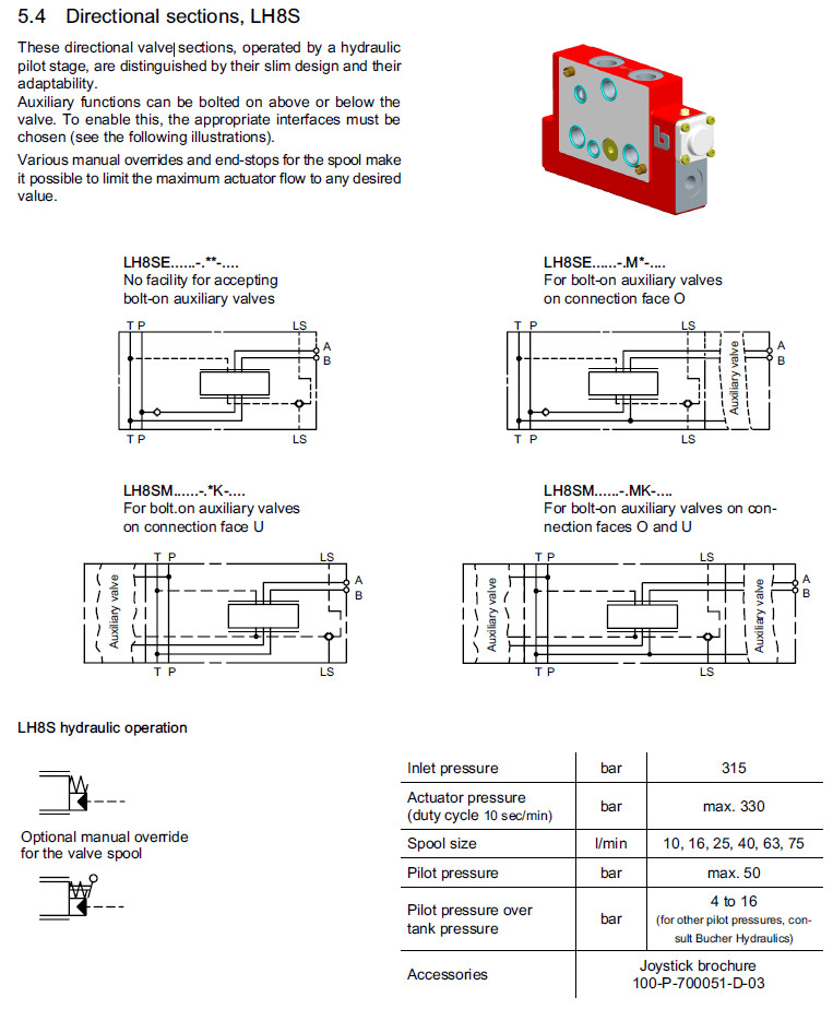 LH8SE3A10,LH8SE3D63,LH8SE3E25,LH8SM3A40,LH8SM3D63,LH8SM3E75,Bucher方向閥