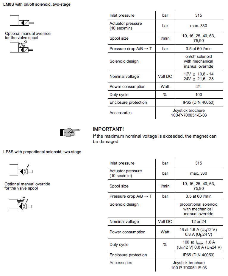 LM8SE3A10,LM8SE3A16,LM8SE3A25,LP8SE3D10,LP8SE3D16,LP8SE3D25,Bucher方向閥