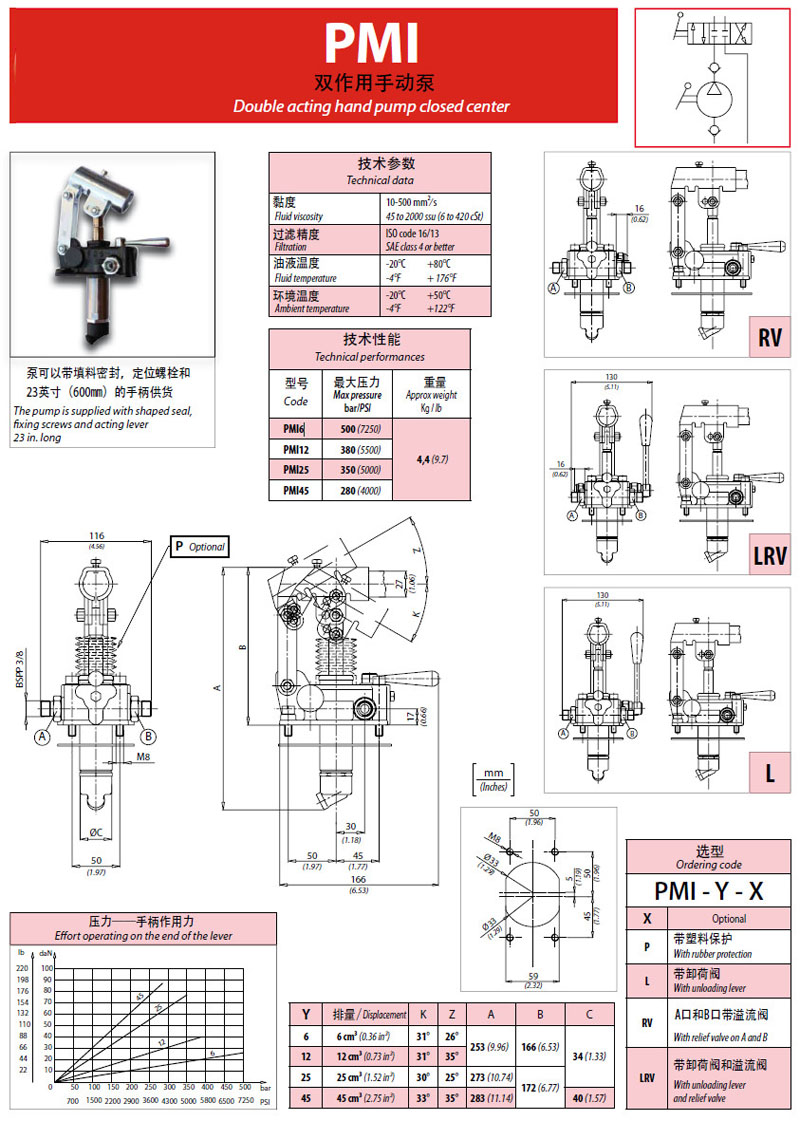 PMI6-P,PMI6-L,PMI12-RV,PMI25-LRV,PMI45-P,PMI12-P,雙作用手動泵
