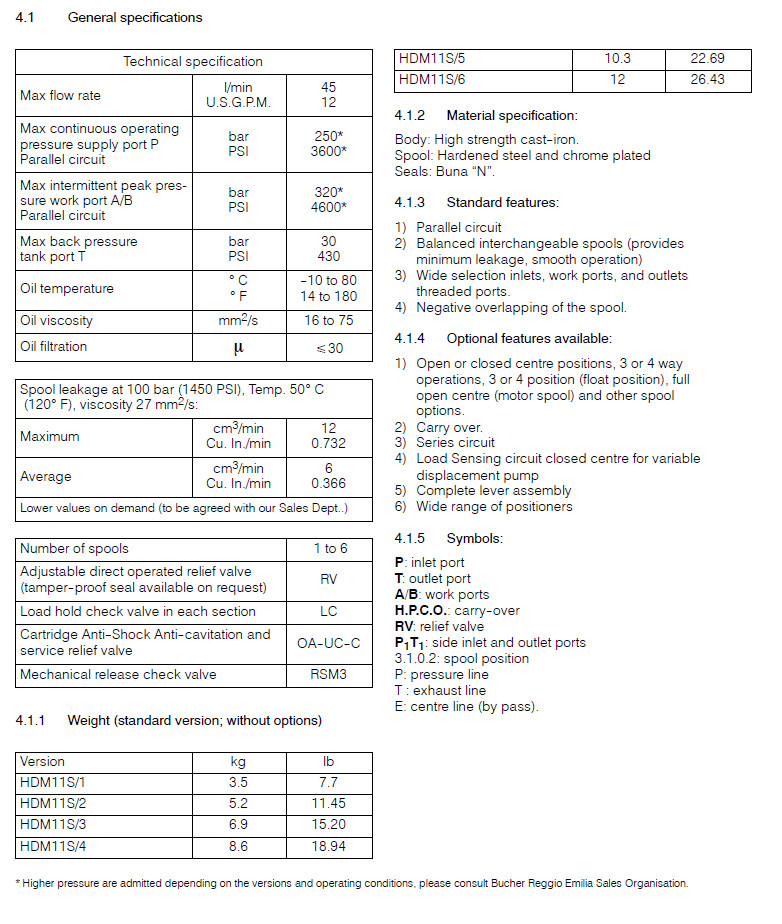 HDM11S/1,HDM11S/2,HDM11S/3,HDM11S/4,HDM11S/5,HDM11S/6,Bucher整體式方向控制閥 |