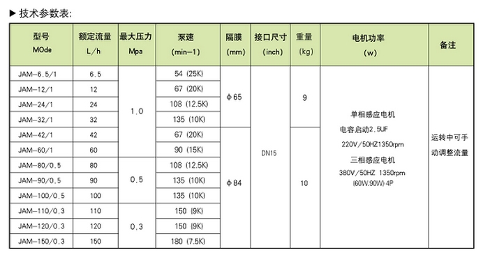 JAM-6.5/1,JAM-12/1,JAM-24/1,JAM-32/1,JAM-42/1,JAM-60/1,JAM-80/0.5,機(jī)械隔膜式計量泵