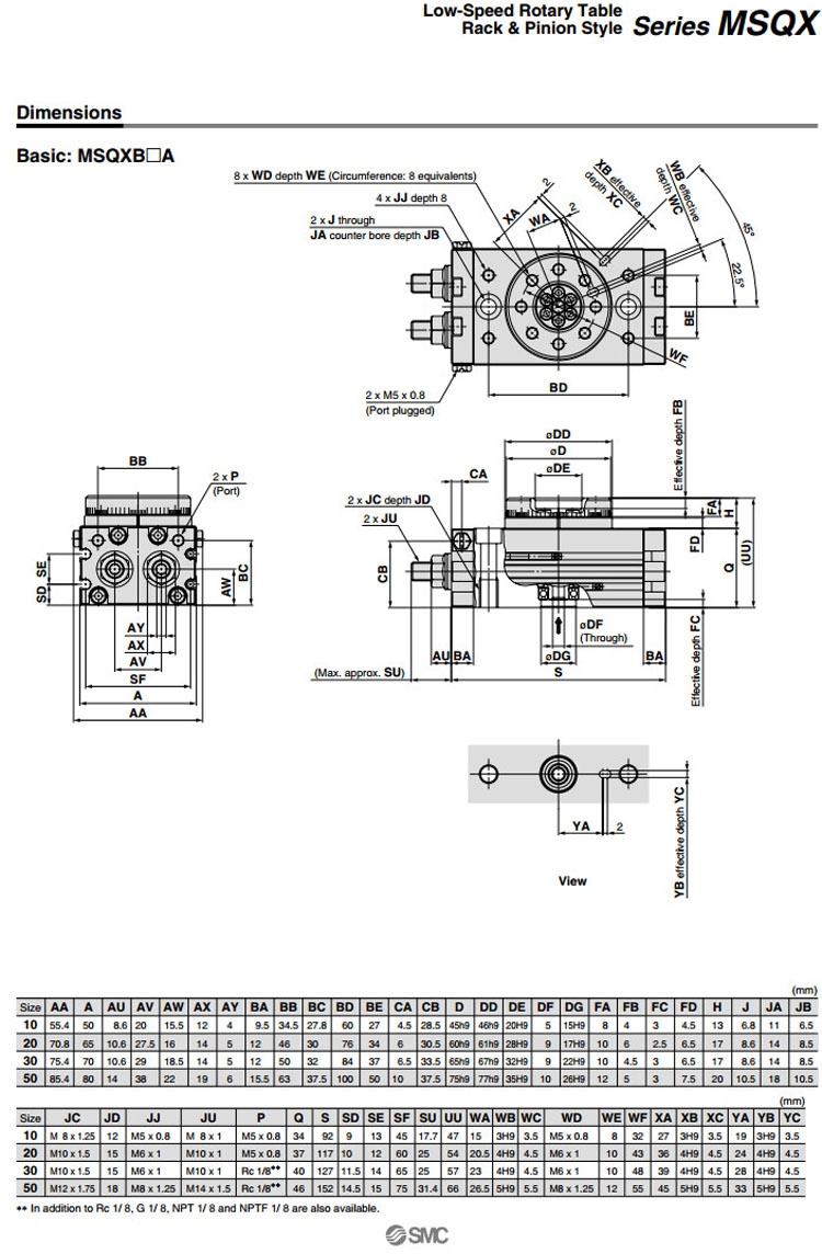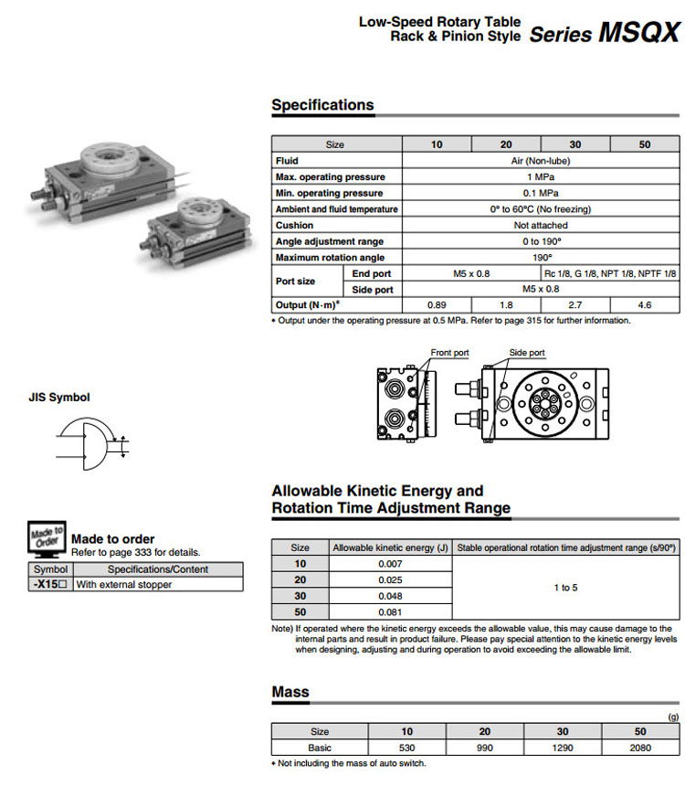 MSQXB10,MSQXB20,MSQXB30,MSQXB50,SMC低速擺動氣缸