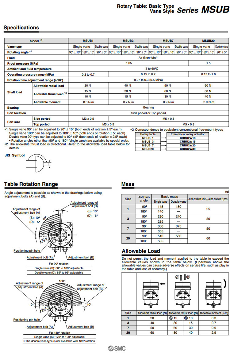 MSUB1-90,MSUB1-180,MSUB3-90,MSUB3-180,MSUB7-90,MSUB7-180,MSUB20-90,MSUB20-180,SMC擺臺(tái)氣缸