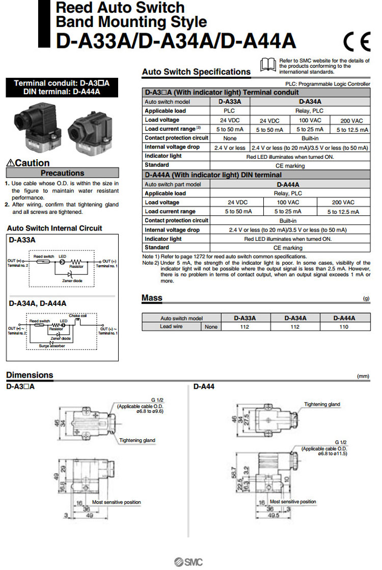 D-A33A,D-A34A,D-A44A,SMC自動開關(guān)