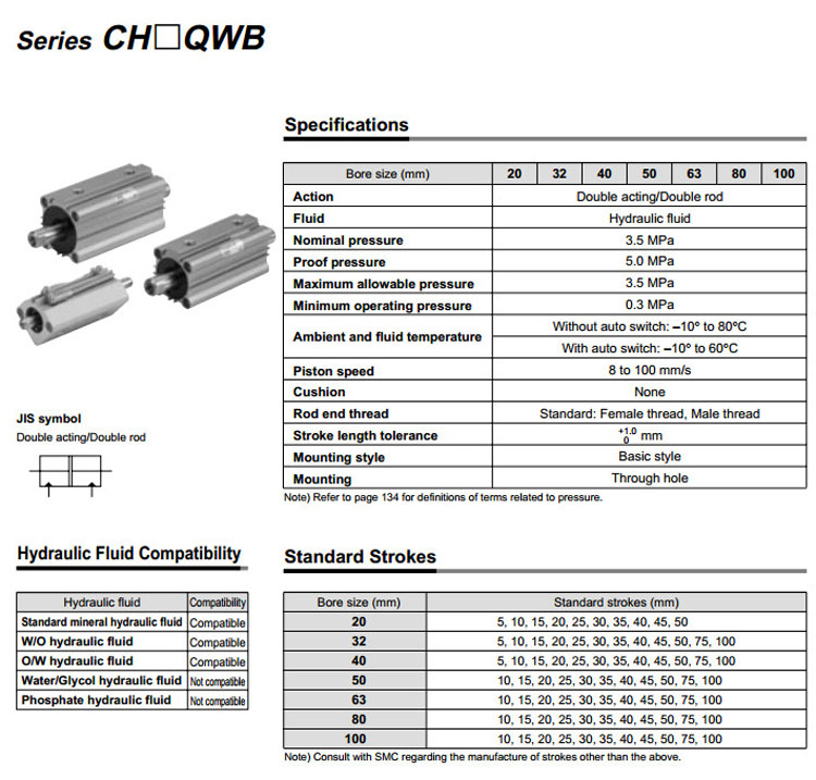 CHQWB20-5,CHQWB32-5,CHQWB40-5,CHQWB50-10,CHQWB63-10,CHQWB80-10,CHQWB100-10,CHQWB40-100,SMC液壓氣缸