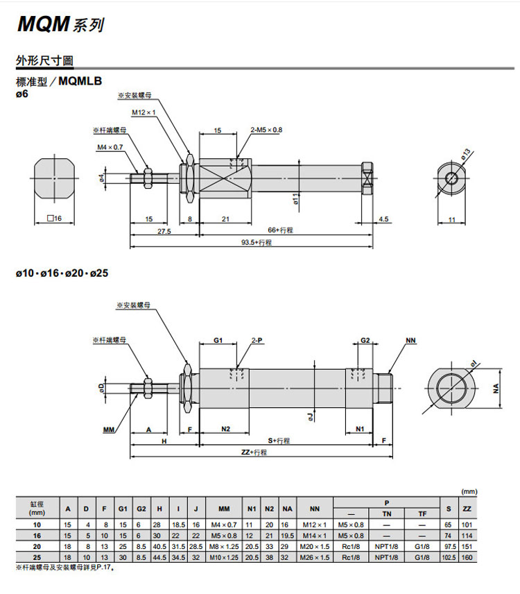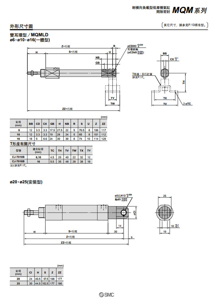 MQMLB10H-15D,MQMLL10H-15D,MQMLF10H-15D,MQMLG10H-15D,MQMLD10H-15D,MQMLC20H-15D,SMC低摩擦氣缸
