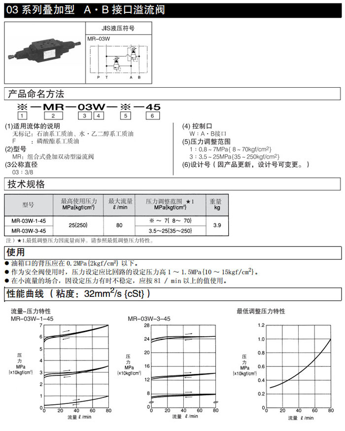 MR-03W-1-45,MR-03W-3-45,DAIKIN疊加型溢流閥