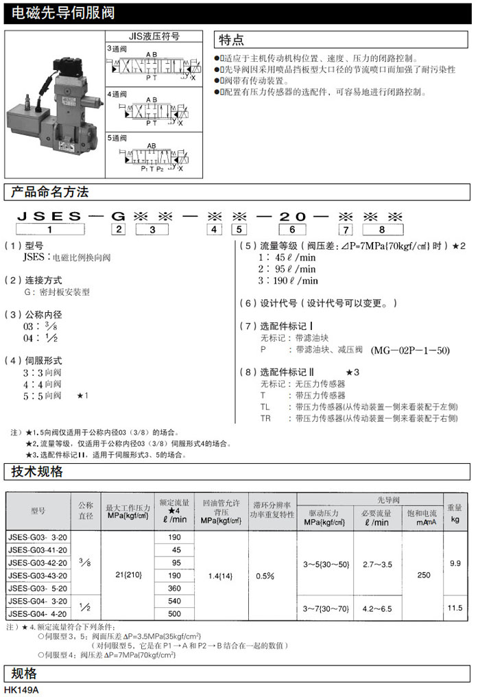 JSES-G03,JSES-G04,JSES-G03-3-20,JSES-G04-3-20,JSES-G04-4-20,JSES-G03-5-20,DAIKIN電磁先導(dǎo)伺服閥