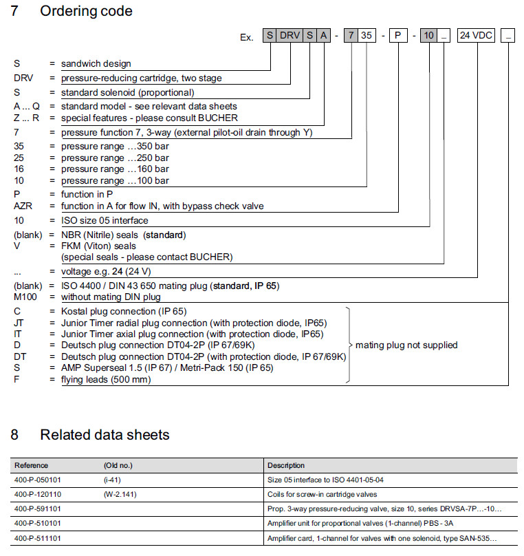 SDRVSA-735-P-10,SDRVSA-725-P-10,SDRVSA-716-P-10,SDRVSA-710-P-10,Bucher比例減壓閥