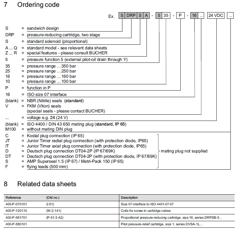 SDRPSA-535-P-16,SDRPSA-525-P-16,SDRPSA-516-P-16,SDRPSA-510-P-16,Bucher比例減壓閥
