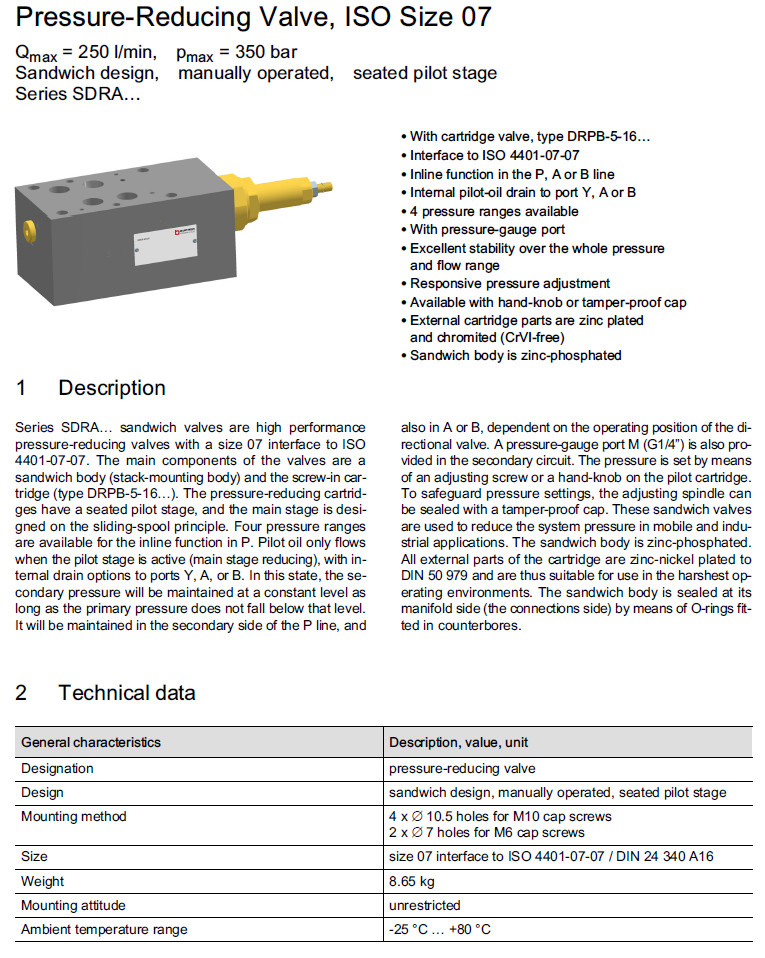 SDRA-P-16-35,SDRA-PA-16-25,SDRA-PB-16-16,SDRA-P-16-10,Bucher減壓閥