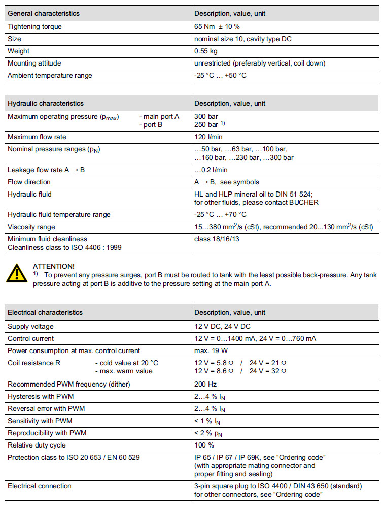 DBVSA-1CG-160-10-3,DBVSA-1CG-230-10-3,DBVSA-1CG-100-10-3,Bucher壓力控制閥