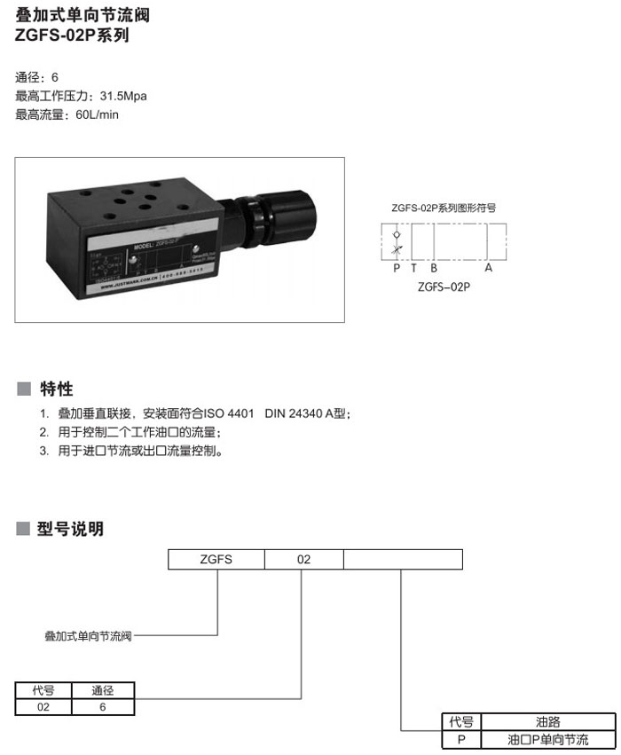 ZGFS-02P,疊加式單向節(jié)流閥