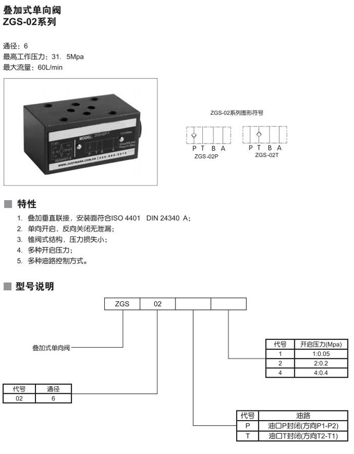 ZGS-02P1,ZGS-02P2,ZGS-02P4,ZGS-02T1,ZGS-02T2,ZGS-02T4,疊加式單向閥
