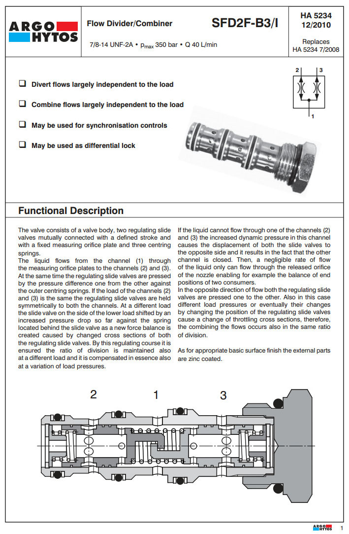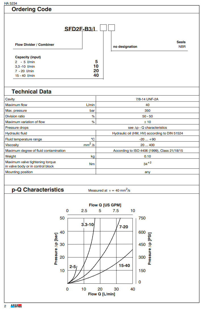 SFD2F-B3/I5,SFD2F-B3/I10,SFD2F-B3/I20,SFD2F-B3/I40,ARGO流量分配/合成器