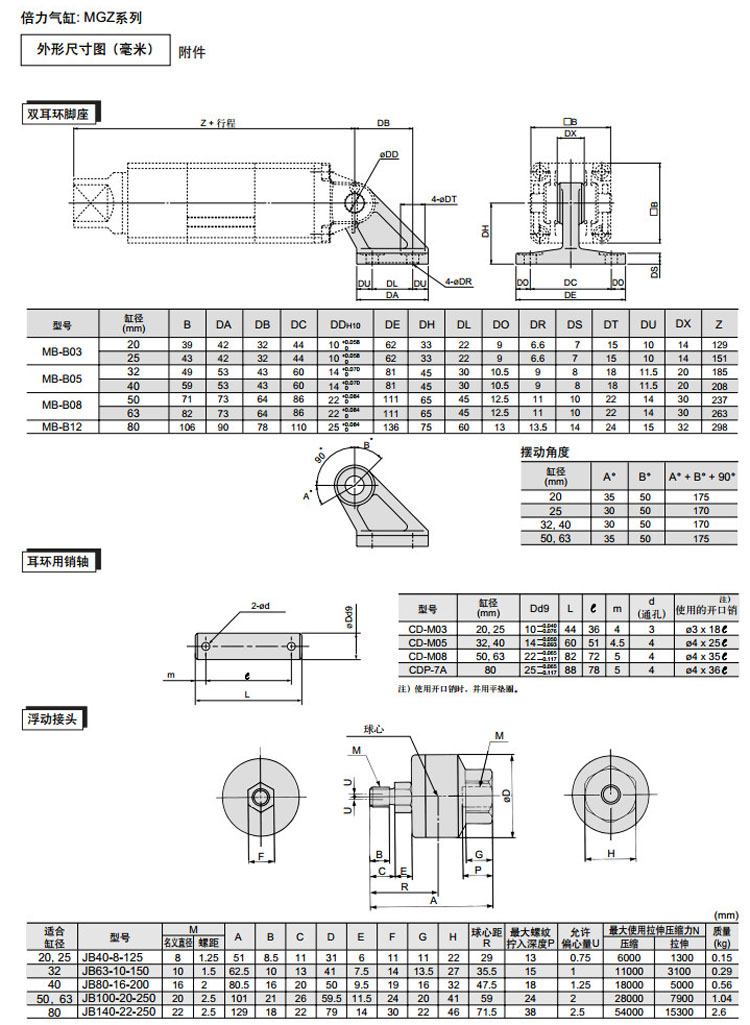 MGZ20,MGZ25,MGZ32,MGZ40,MGZ50,MGZ63,MGZ80,MGZ20-75,MGZ20Z-75,SMC桿不回轉(zhuǎn)倍力氣缸