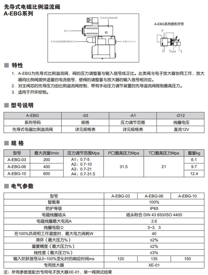 A-EBG-03,A-EBG-06,A-EBG-10,A-EBG-03-A1-D12,A-EBG-06-A1-D12,先導(dǎo)式電磁比例溢流閥