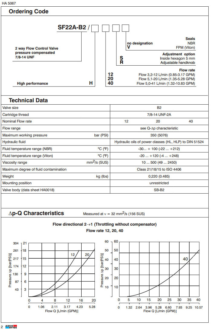 SF22A-B2/H12,SF22A-B2/H20,SF22A-B2/H40,ARGO 2路流量控制閥