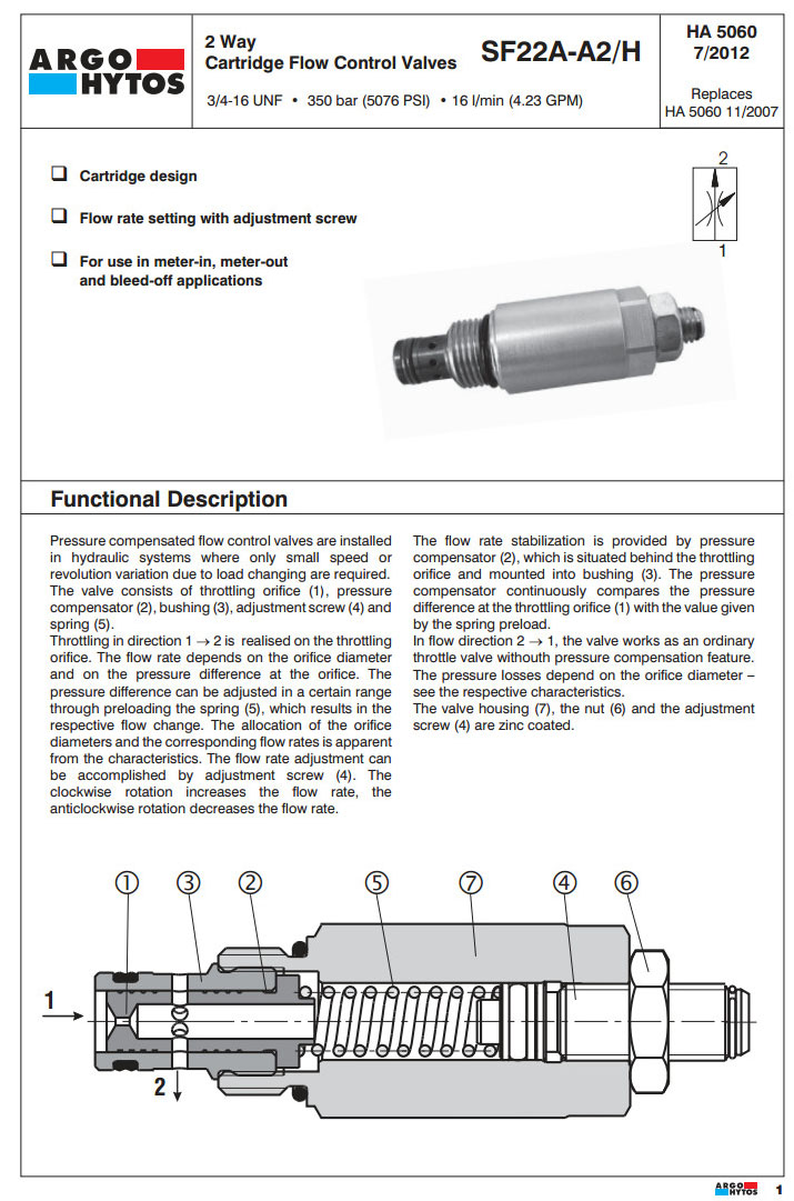 SF22A-A2/H2,SF22A-A2/H6,SF22A-A2/H12,ARGO 2路插裝流量控制閥