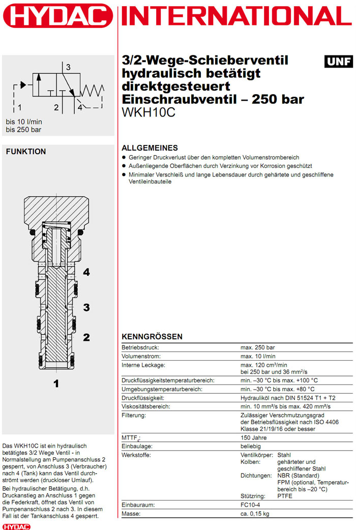 WKH10C-01-C-N-26,HYDAC直接式2/2方向閥