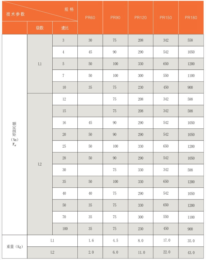 PR060-L1,PR090-L1,PR120-L1,PR150-L1,PR180-L1,行星減速機